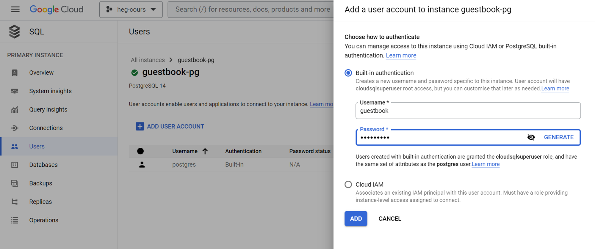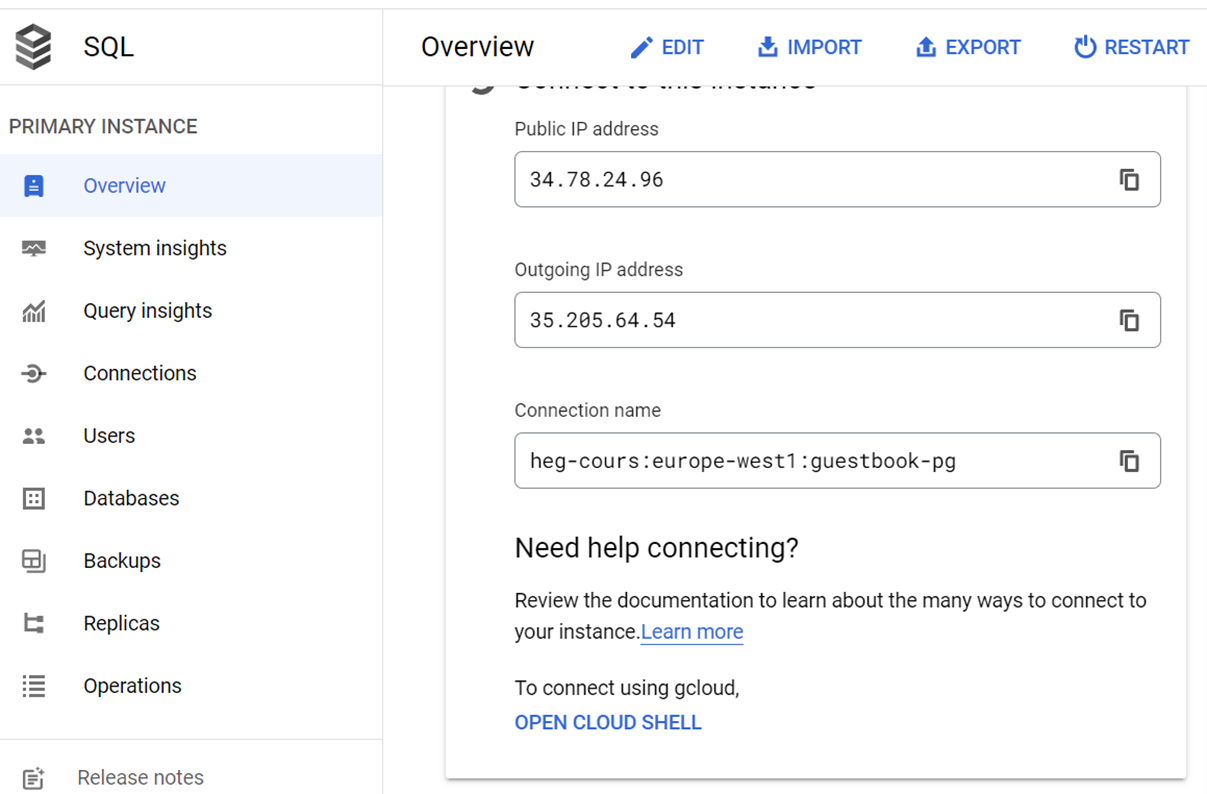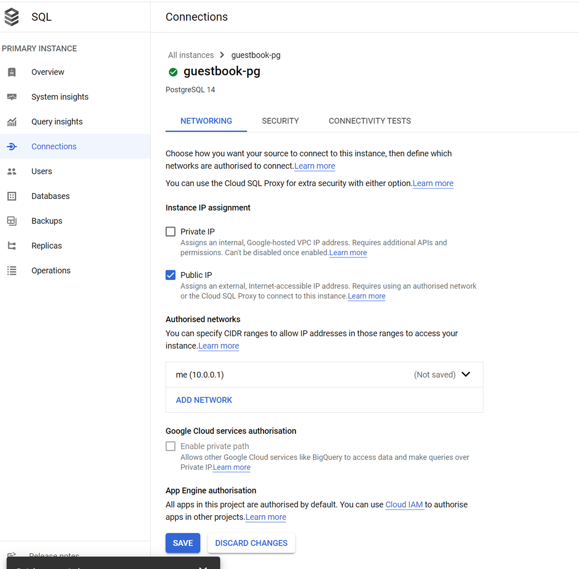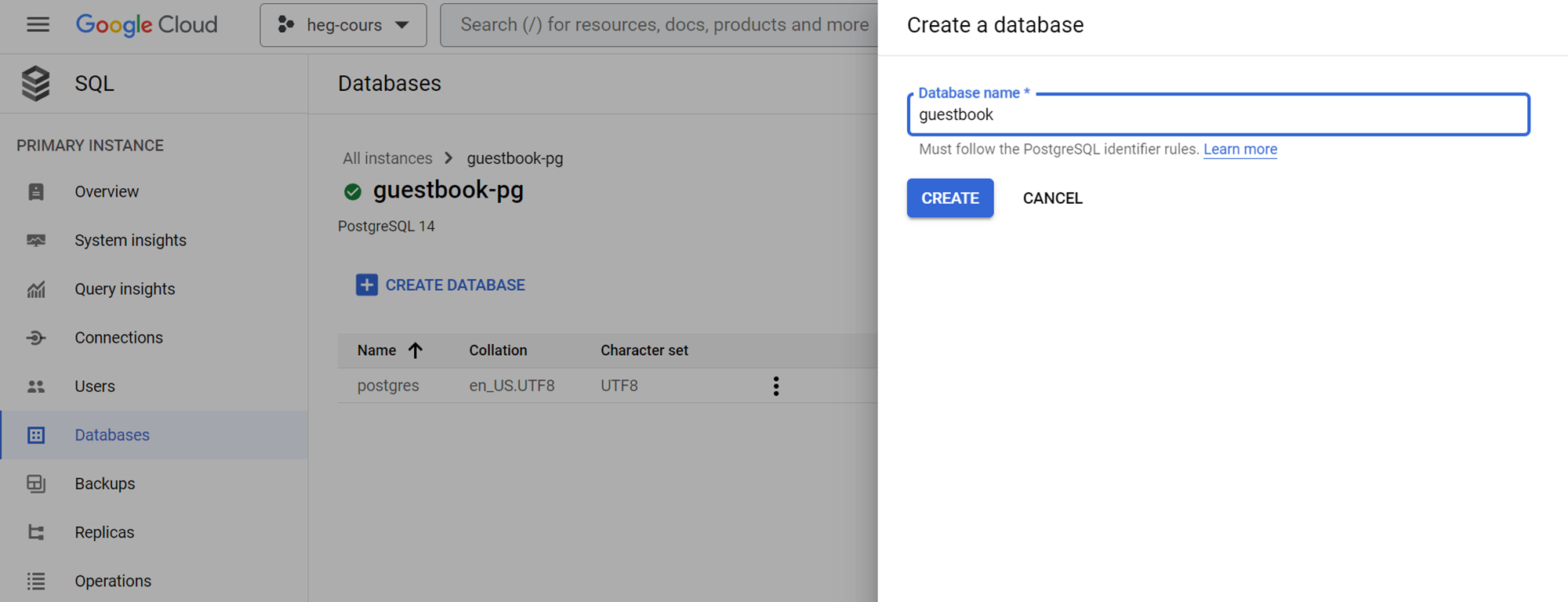 gcloud sql connect guestbook-pg --user=guestbook --quiet