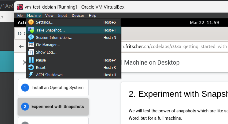 We will test the power of snapshots which are like save games in a video game or previous verision of documents in Word, but for a full machine.