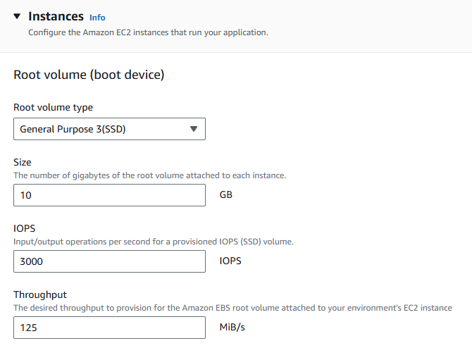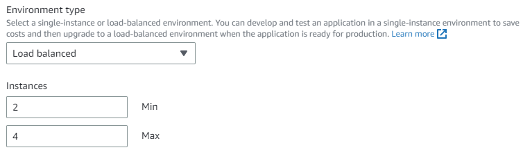 Then, create an execution environment to run your application. We can give Elastic Beanstalk some operating parameters in terms of how many resources to allocate to our application including the minimum and maximum number of instances to deploy to server the application. In this case, we would like to specify a minimum of 2 and a maximum of 10 machines.