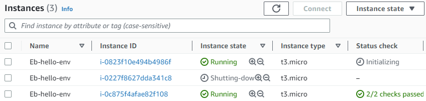 Then, visit the EC2 console to see that the specified minimum number of instances has been created