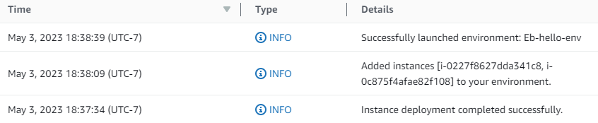 This will create a new application version and deploy it. Wait for the command to complete. Contemplate how long this is taking because it is bringing up virtual machines. Wouldn't it be better if those machines were already up and all you needed to do is deploy a container to them? Maybe this is why people are moving to a container world!