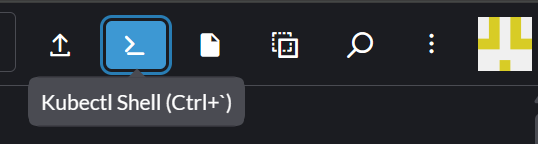 Log in to your Rancher UI and navigate to your local cluster. Click the Kubectl Shell icon in the top-right corner.