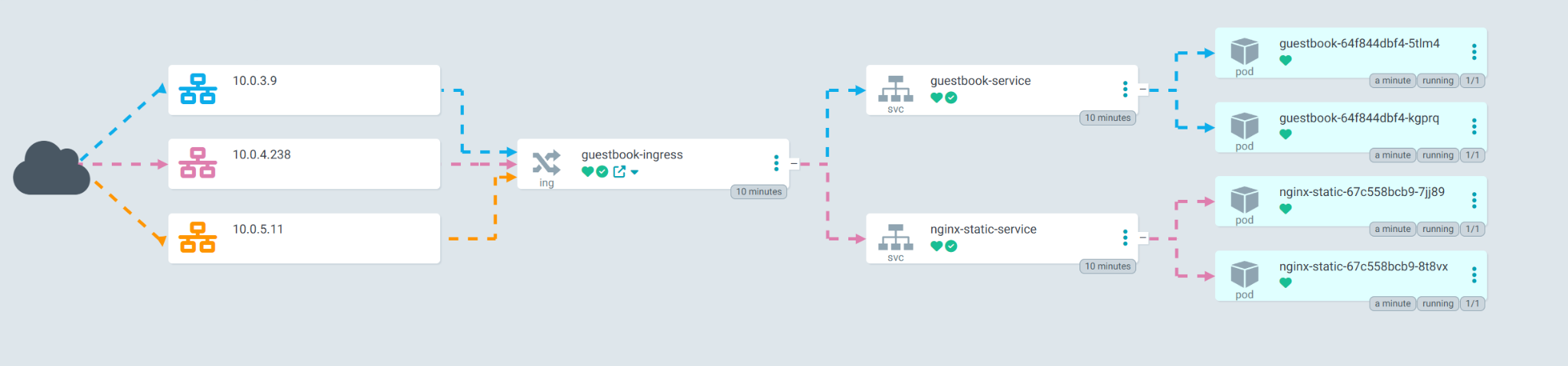 Once everything is Healthy and Synced, open a browser and navigate to the DNS name you configured for the guestbook (guestbook-username.duckdns.org). You should see the application running.
