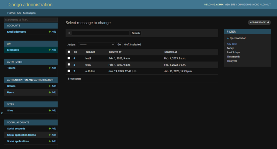 One of the most powerful parts of Django is the automatic admin interface. It reads metadata from your models to provide a quick, model-centric interface where trusted users can manage content on your site.