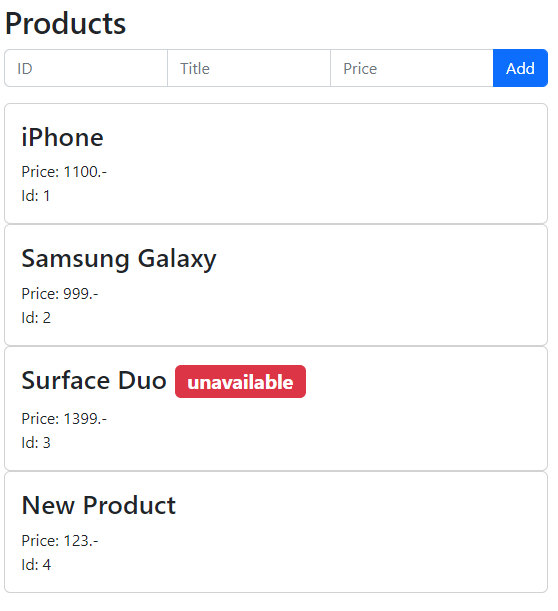 Change the code so that the search field from exercise 4 does not filter the local list, but performs a search via the API instead https://dummyjson.com (https://dummyjson.com/products/search?q=search_term).